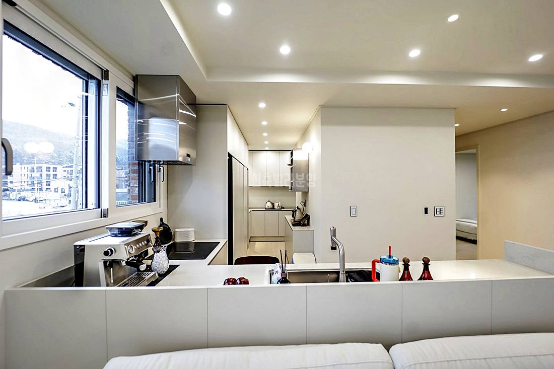 부엌은 3열 냉장고가 쏙 들어갈 만큼