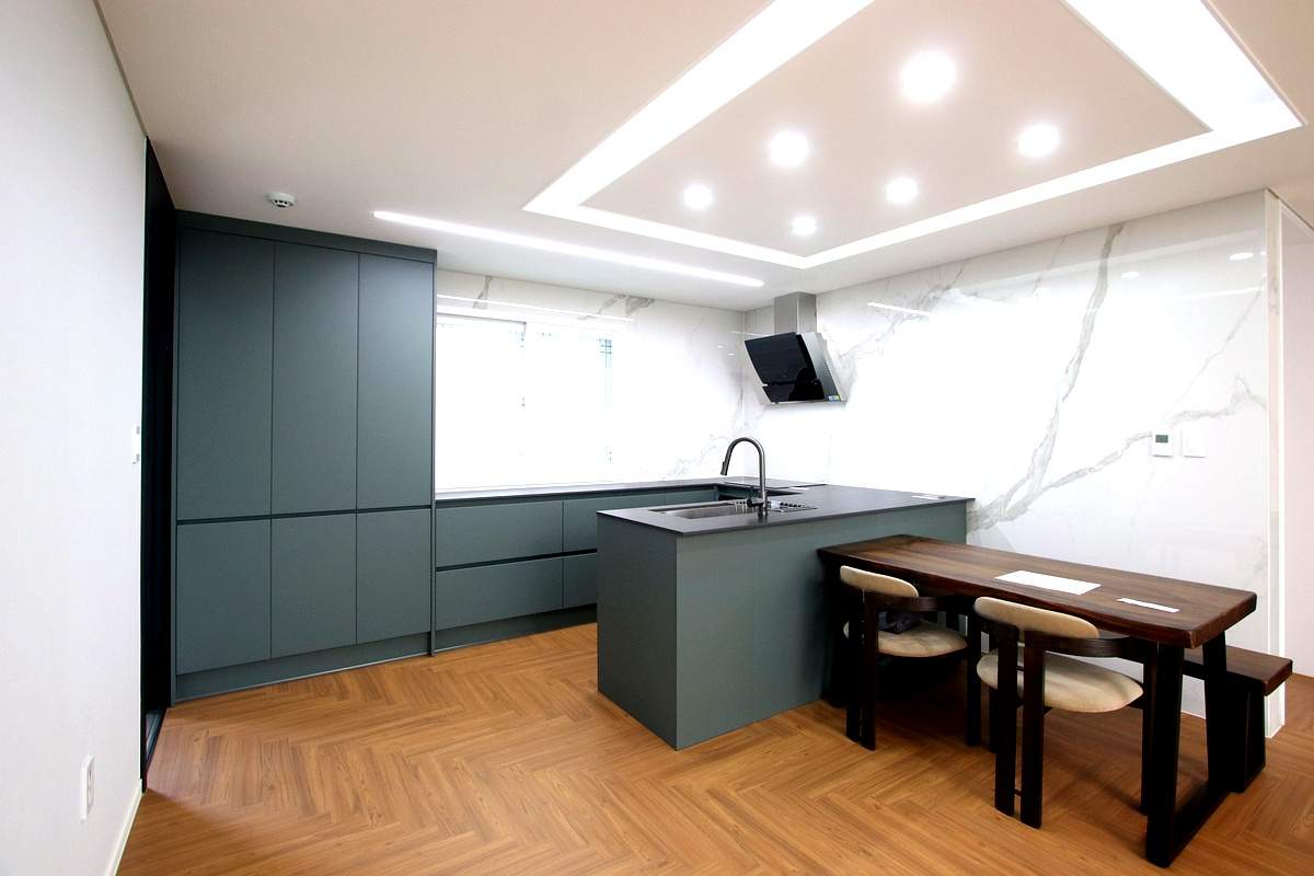 신현동신축빌라 집의 첫인상을 결정짓는 외관은 천연 라임스톤으로 마감되어 시간이 흐를수록 깊어지는 품격을 자랑합니다. 하지만 진짜 감동은 중문을 열고 들어서는 순간 시작되죠. 거실 바닥에 리드미컬하게 펼쳐진 헤링본 마루는 시각적인 즐거움과 함께 원목이 주는 따스한 온기를 전해줍니다.