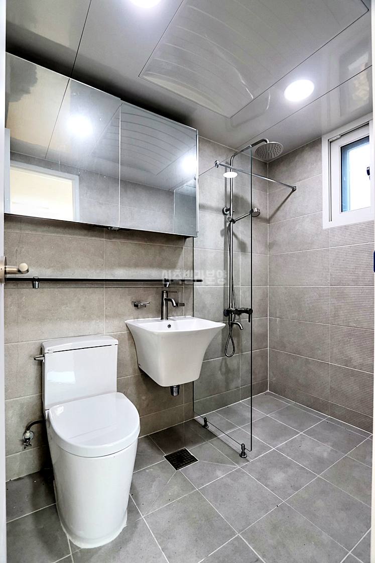 안방 욕실도 유리 파티션에 해바라기 수전까지