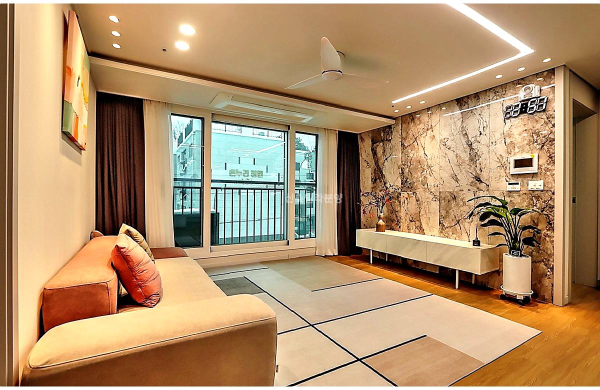 - 거실: 6인 소파도 거뜬한 사이즈, 시스템 에어컨 & 실링팬 기본 옵션
