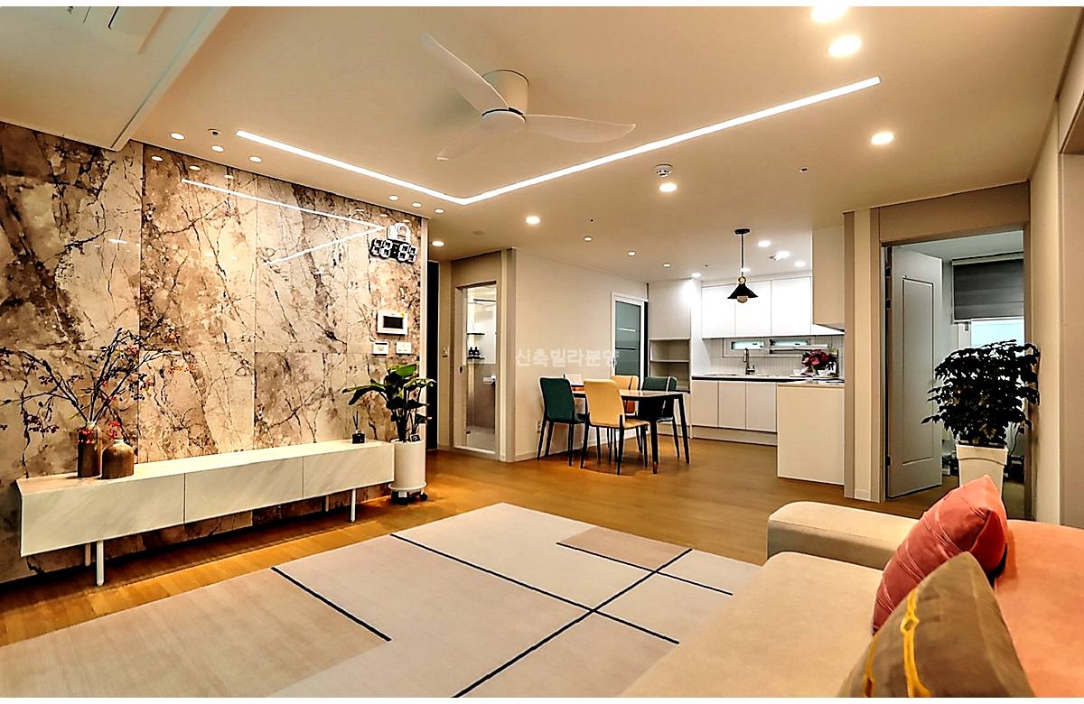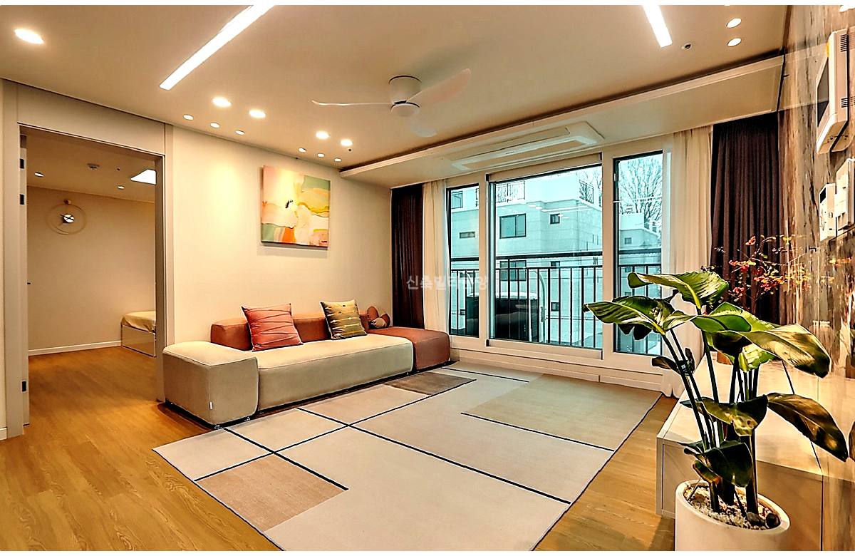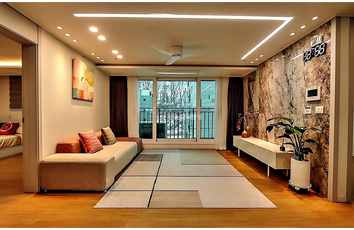 - 거실: 6인 소파도 거뜬한 사이즈, 시스템 에어컨 & 실링팬 기본 옵션