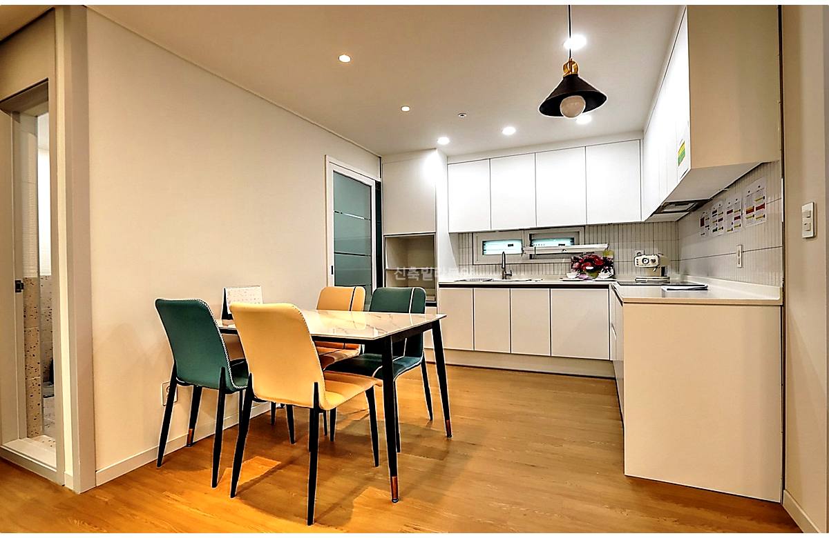 - 주방: 수납력 최고인 ㄷ자형 아일랜드 식탁, 6인용 식탁 공간 확보