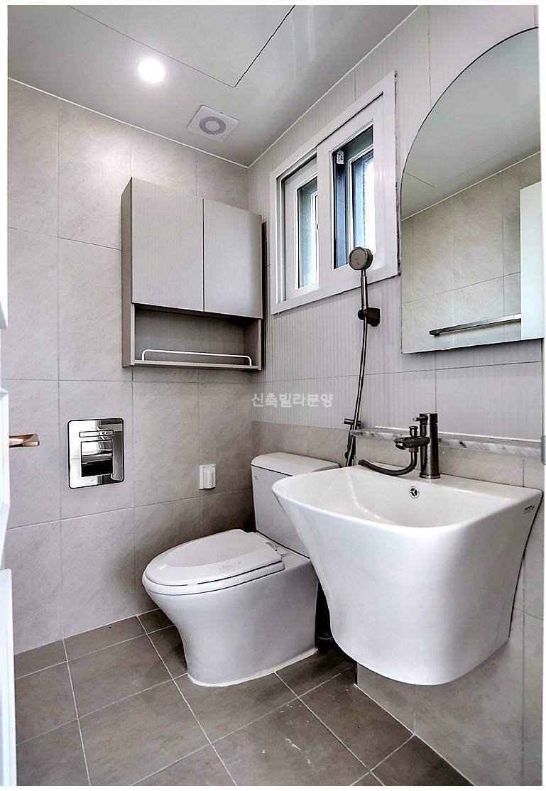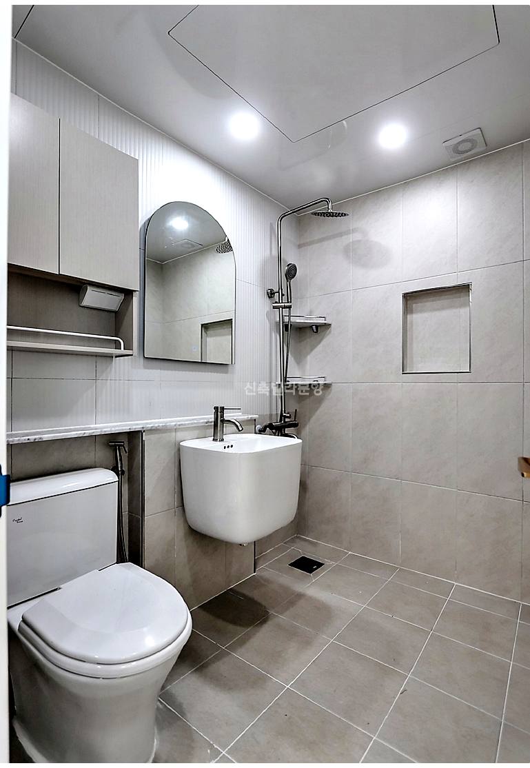 욕실은 최신 트렌드인 무광 그레이 타일로 시공되었는데