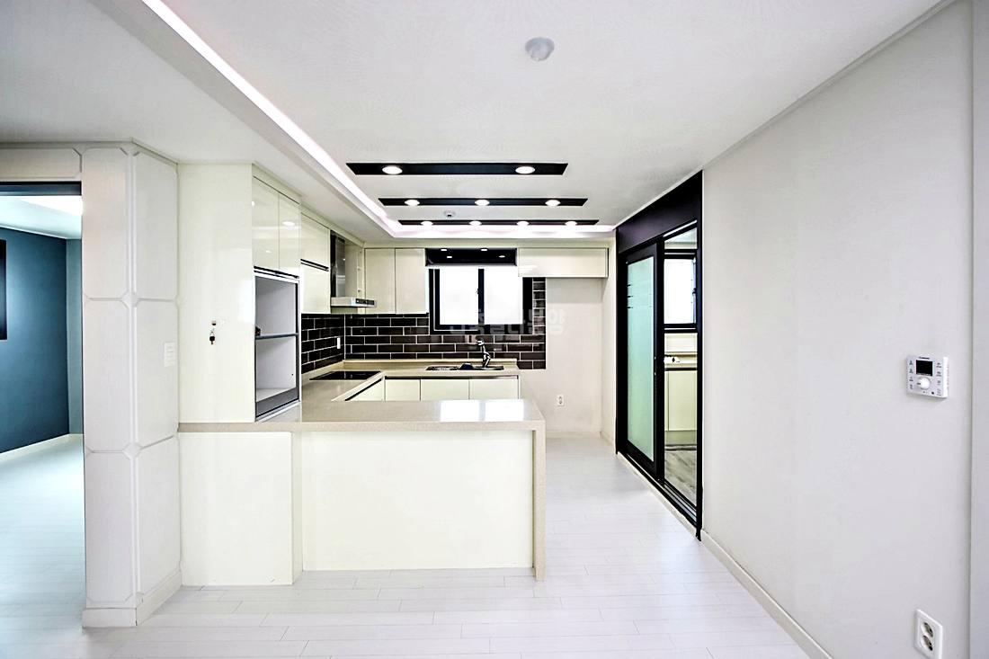 주방은 ‘ㄷ’자형 싱크대로 조리 동선이 매우 효율적이고