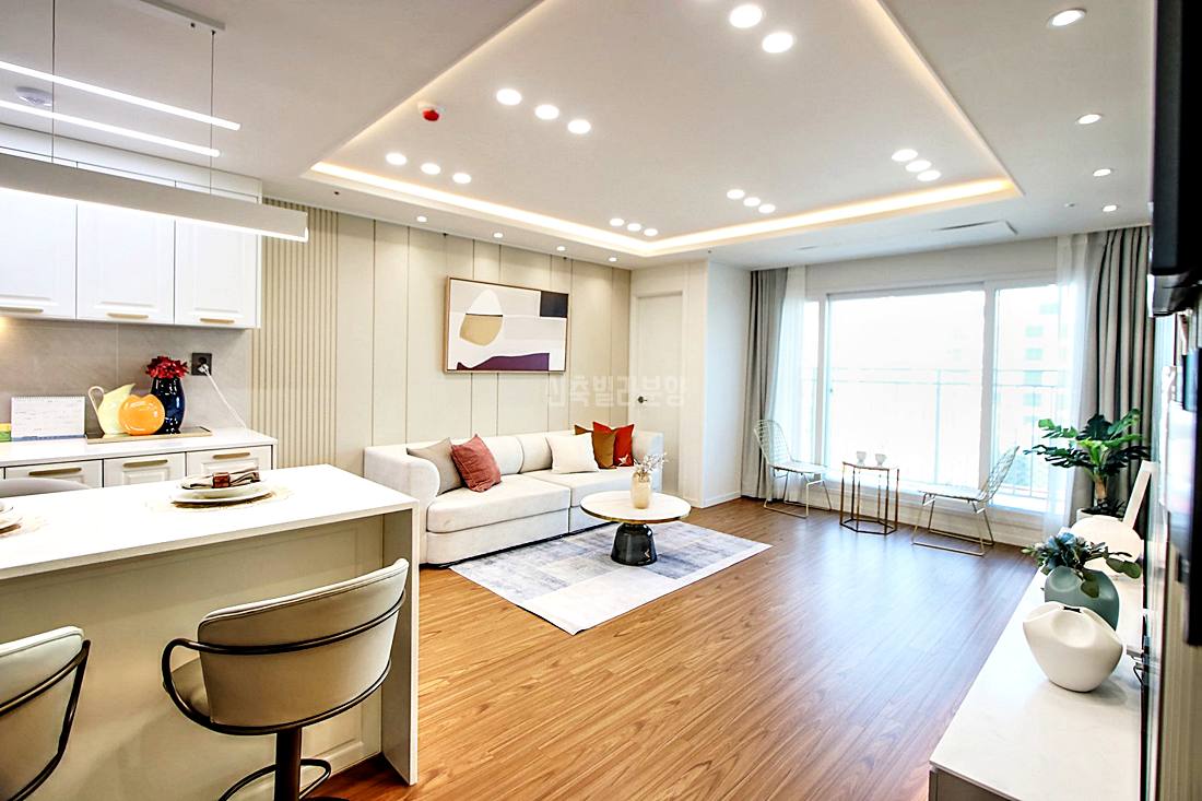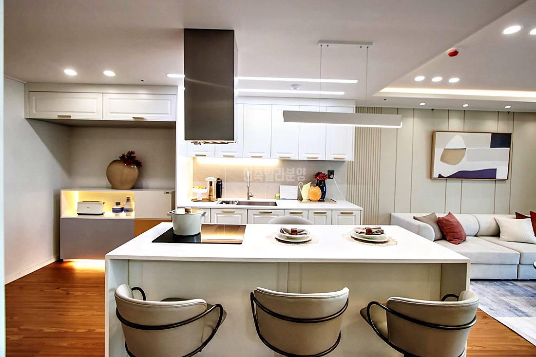 본 삼정동 3룸 분양 현장은 거실과 주방이 일체형으로 설계되어 가족 간의 소통을 원활하게 돕습니다. 화사한 레인 조명이 내부 분위기를 한층 고급스럽게 만들어주며, 거실 창 밖으로 막힘이 없어 사계절 내내 풍부한 채광을 만끽할 수 있습니다. 주방에는 넉넉한 조리대와 냉장고 전용 공간이 마련되어 주부들의 동선을 세심하게 배려했습니다.