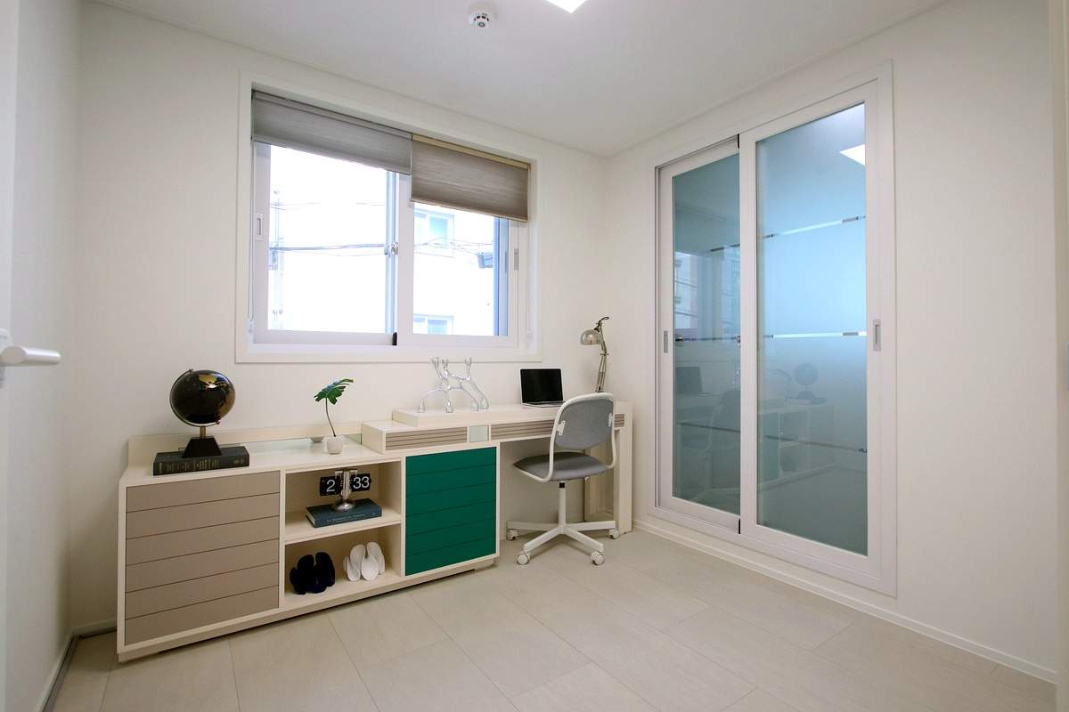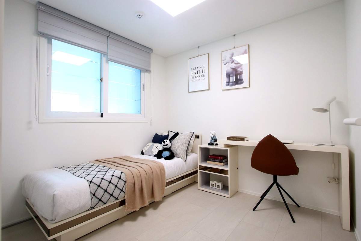 두 번째, 세 번째 방 모두 반듯한 형태라 침대나 책상을 두기 편한 구조예요.