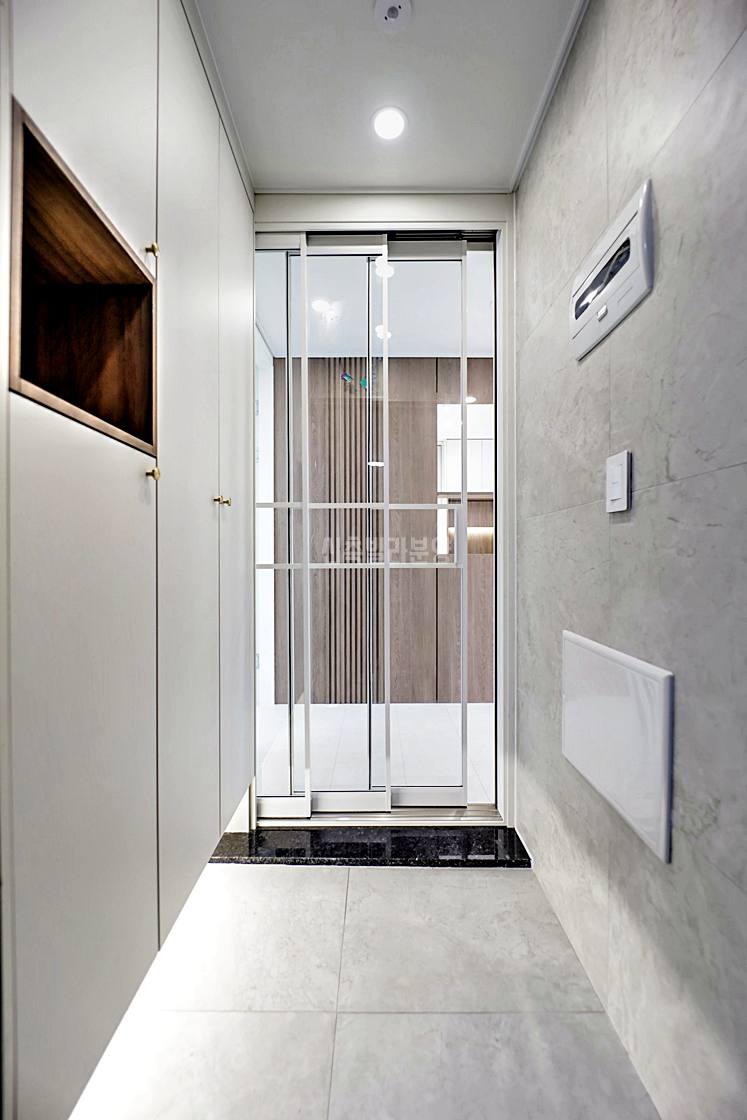 월피동신축빌라 현관은 화이트 톤 신발장과 3 연동 중문이 있어 깔끔하죠.