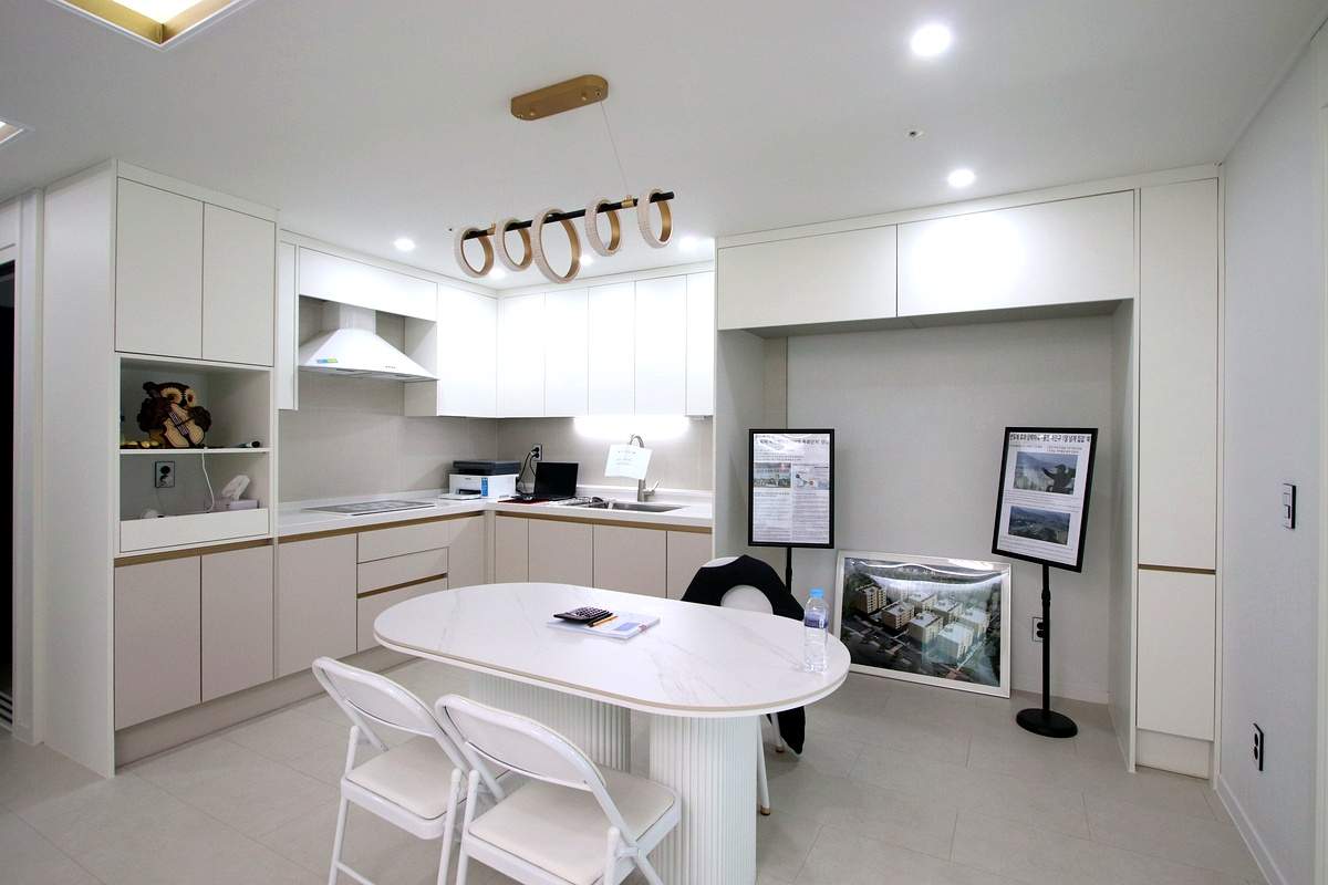 주방은 동선 편한 ㄱ자 구조로 나왔어요.