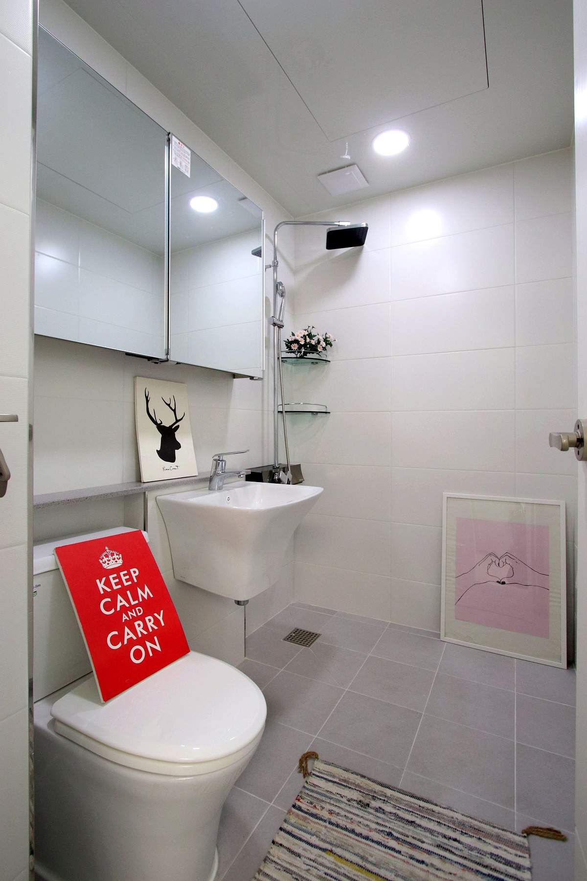 욕실 용품 정리도 아주 쉬워 보였어요.