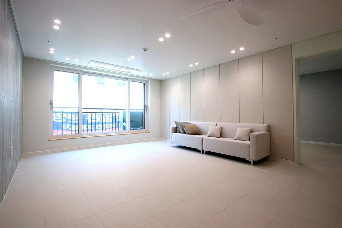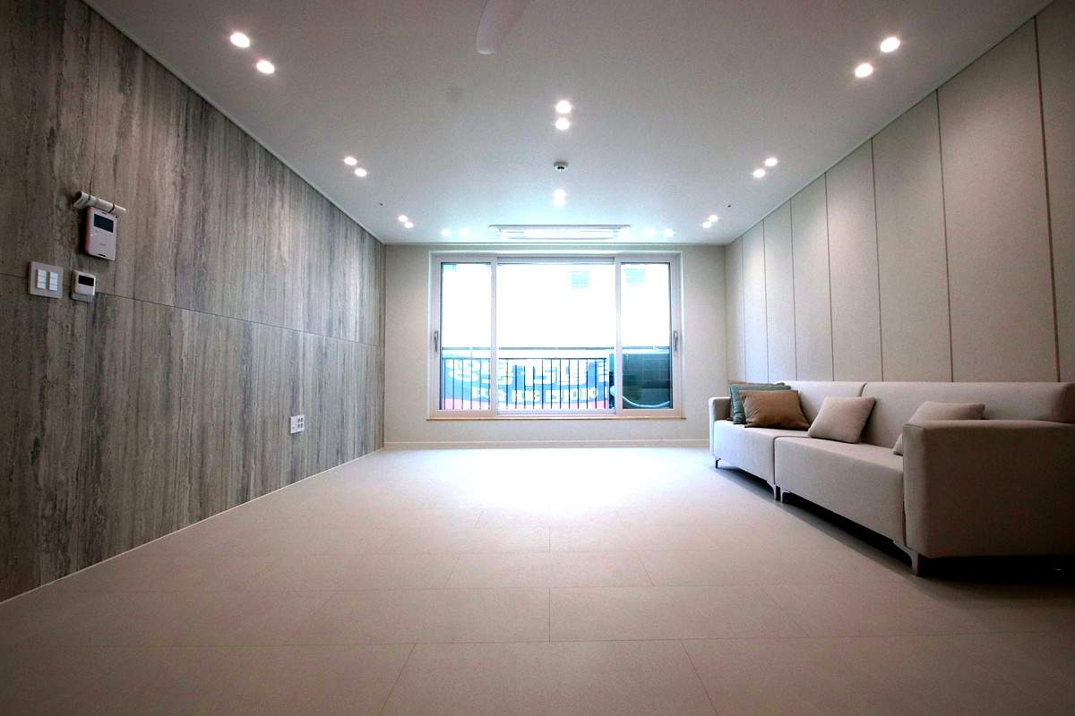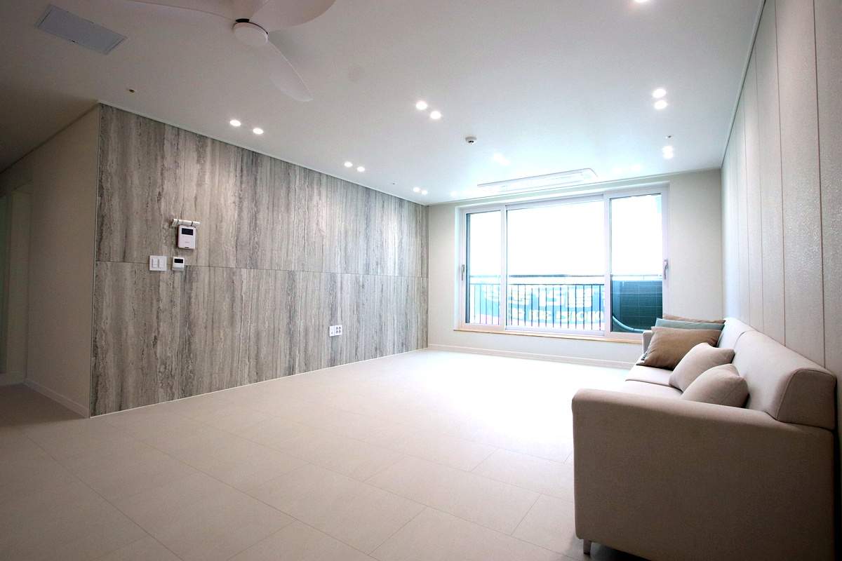 바닥재는 고급 SB 스톤 마루로 시공되어 있어서 아이들이 장난감을 떨어뜨리거나 반려견이 뛰어놀아도 안심할 수 있는 용인 최고의 주거 환경이었습니다.