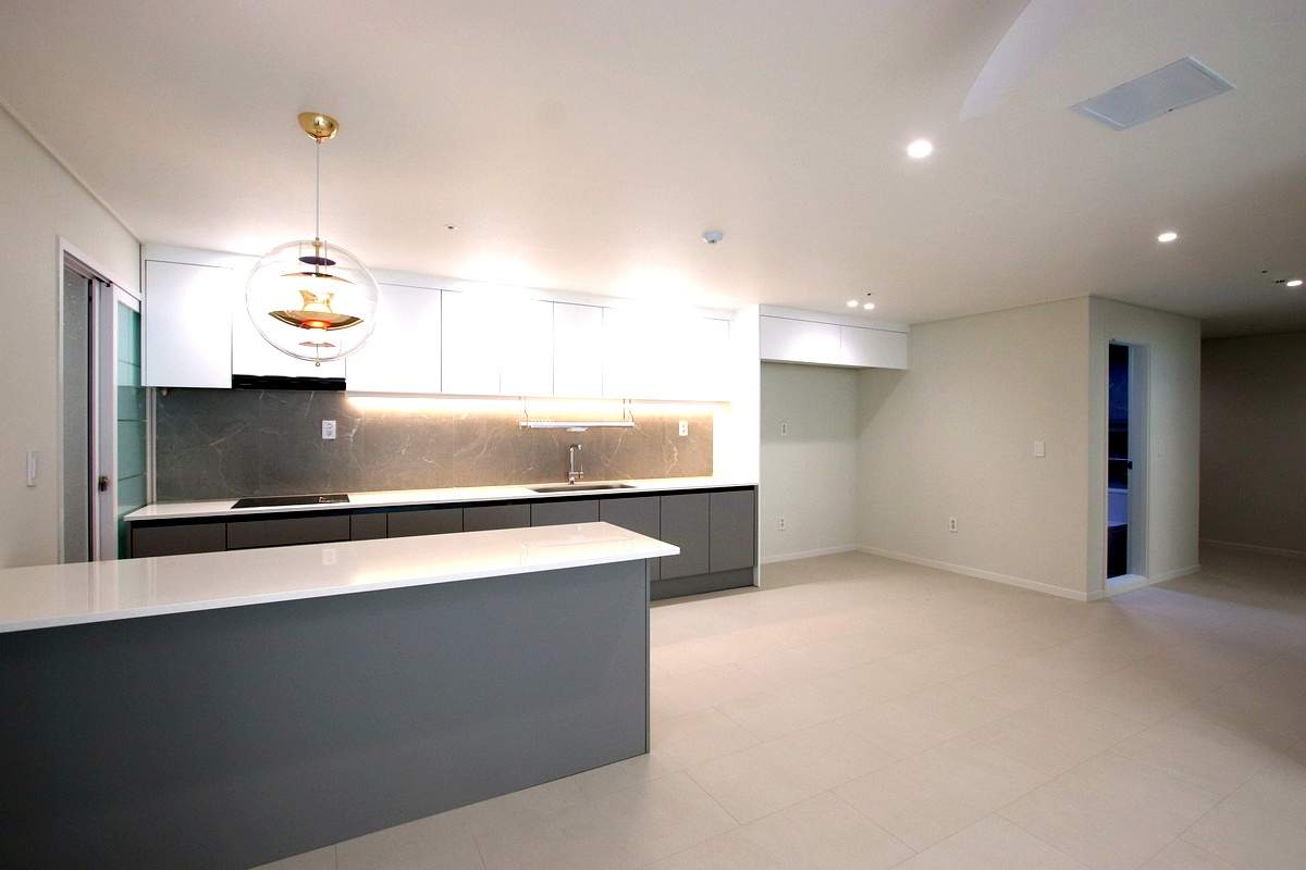 거실과 마주 보는 11 자 구조로 되어 있어서 요리를 하면서도 거실에 있는 가족들과 소통하기에 최적의 동선이었습니다.