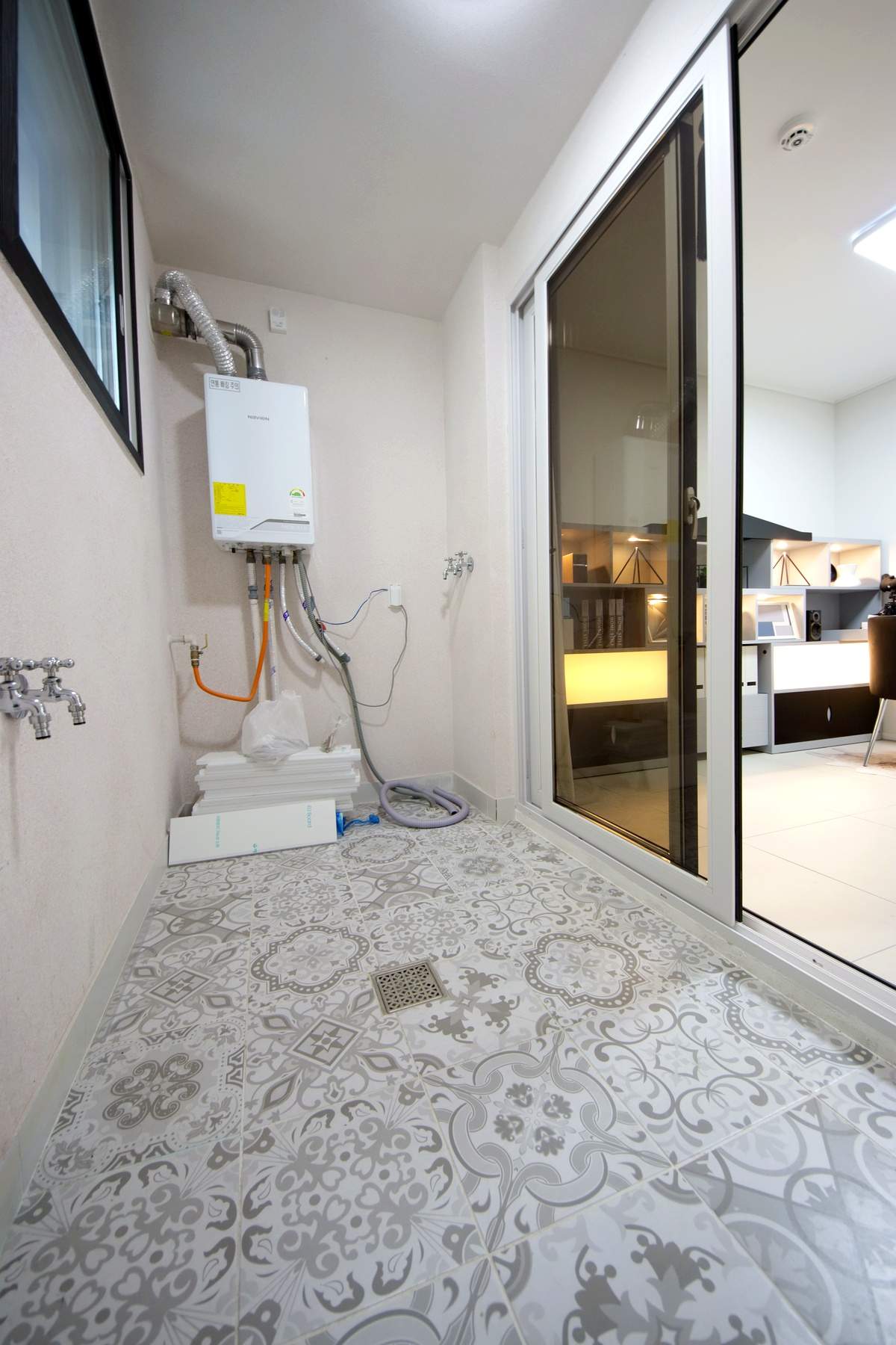 작은방 하나에는 광폭 발코니가 연결되어 있는데 이곳을 세탁실로 활용하면 동선이 아주 매끄럽습니다.