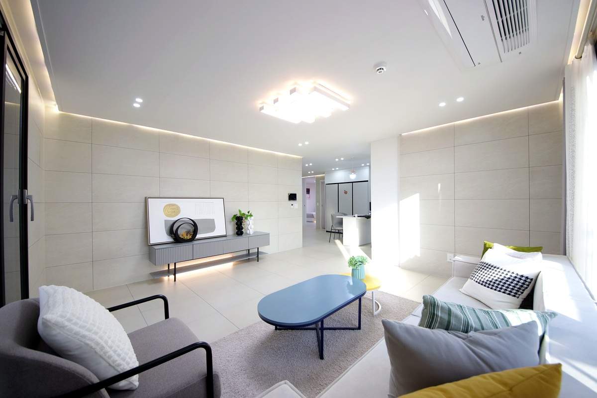 넉넉한 폭 덕분에 대형 TV와 소파를 배치해도 가족 간의 시청 거리가 충분히 확보되는 구조였습니다.