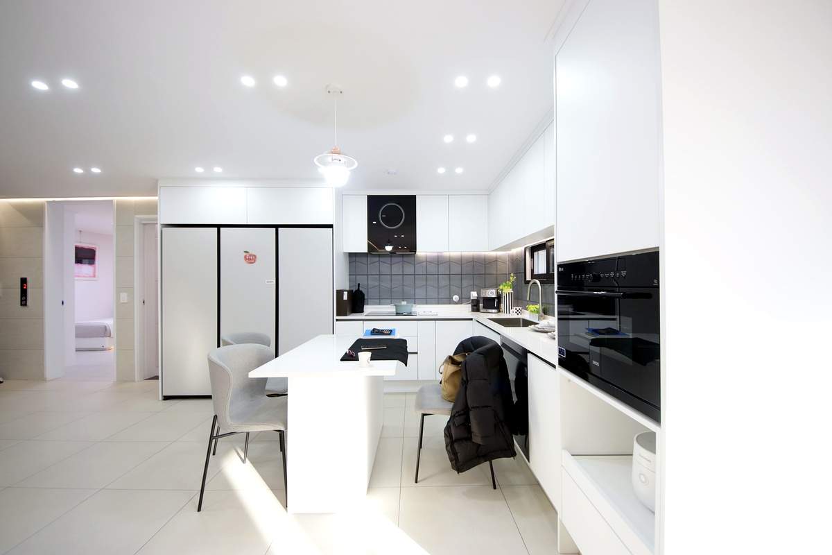 주부님들이 가장 꼼꼼히 살피실 주방은 거실과 자연스럽게 이어지는 동선이 일품입니다.