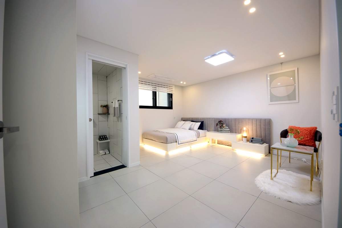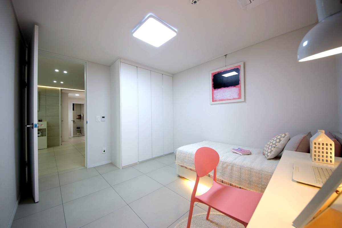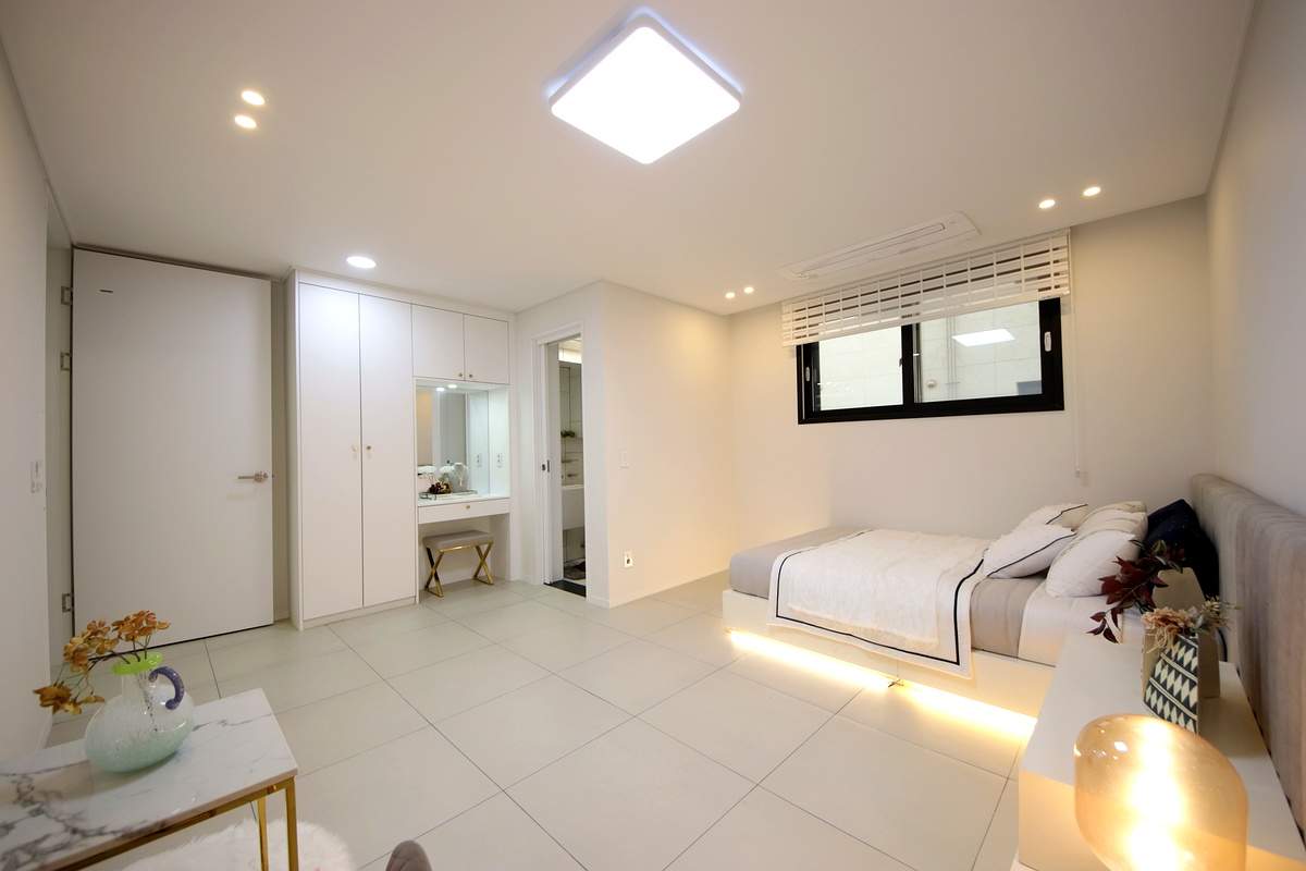 천장형 시스템 에어컨이 거실뿐만 아니라 각 방에도 설치되어 있어 무더운 여름밤에도 가족 모두가 쾌적하게 수면을 취할 수 있습니다.