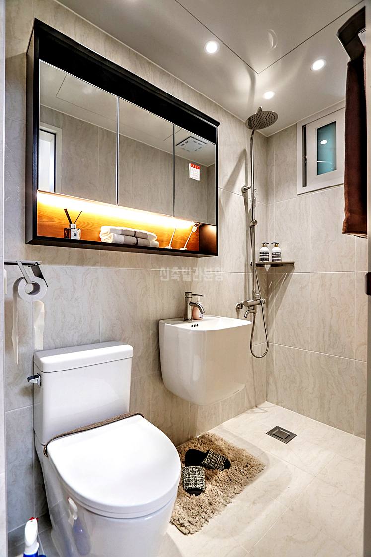 화장실 청소용품을 보관해도 될 공간을 제공해줘요.