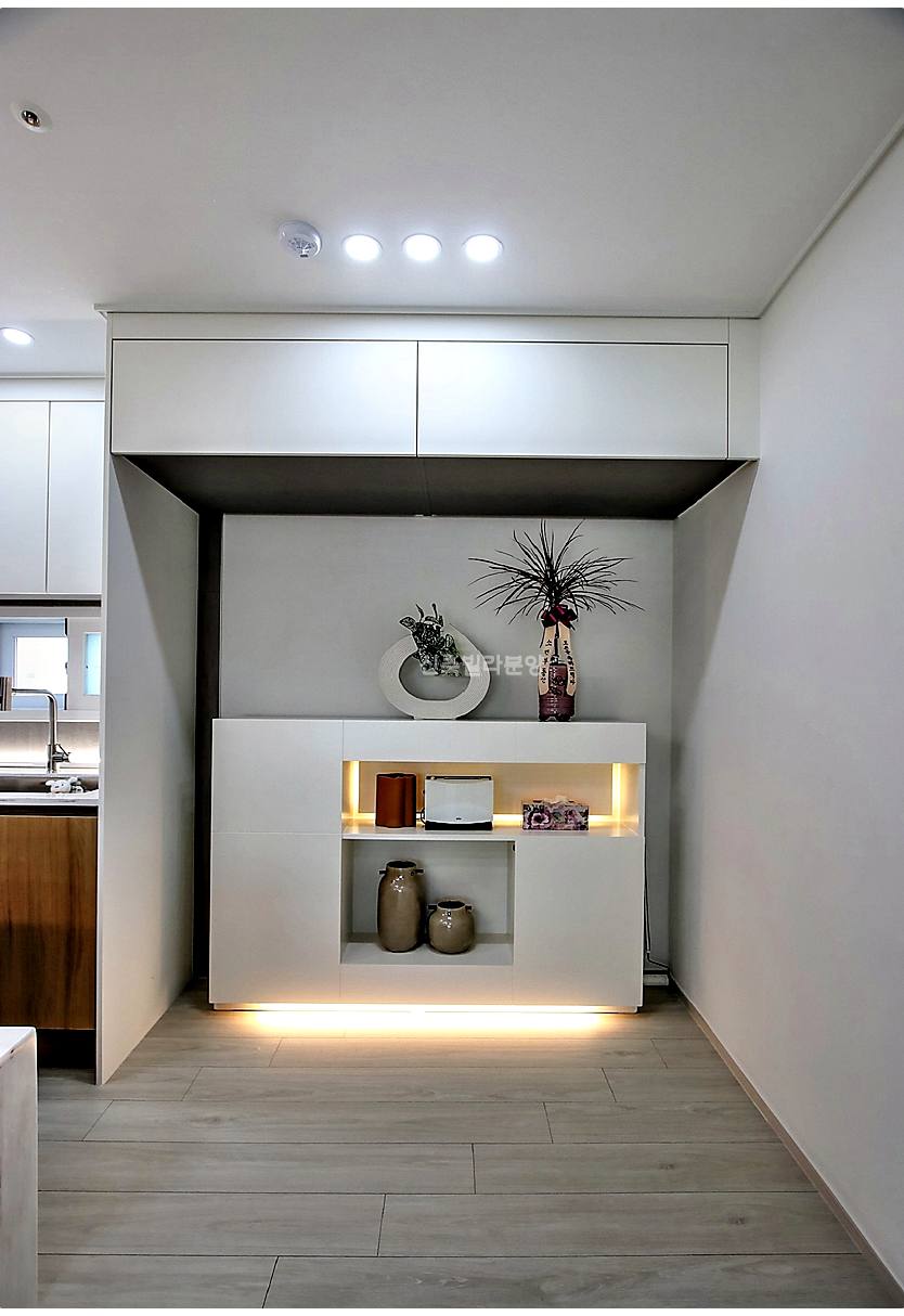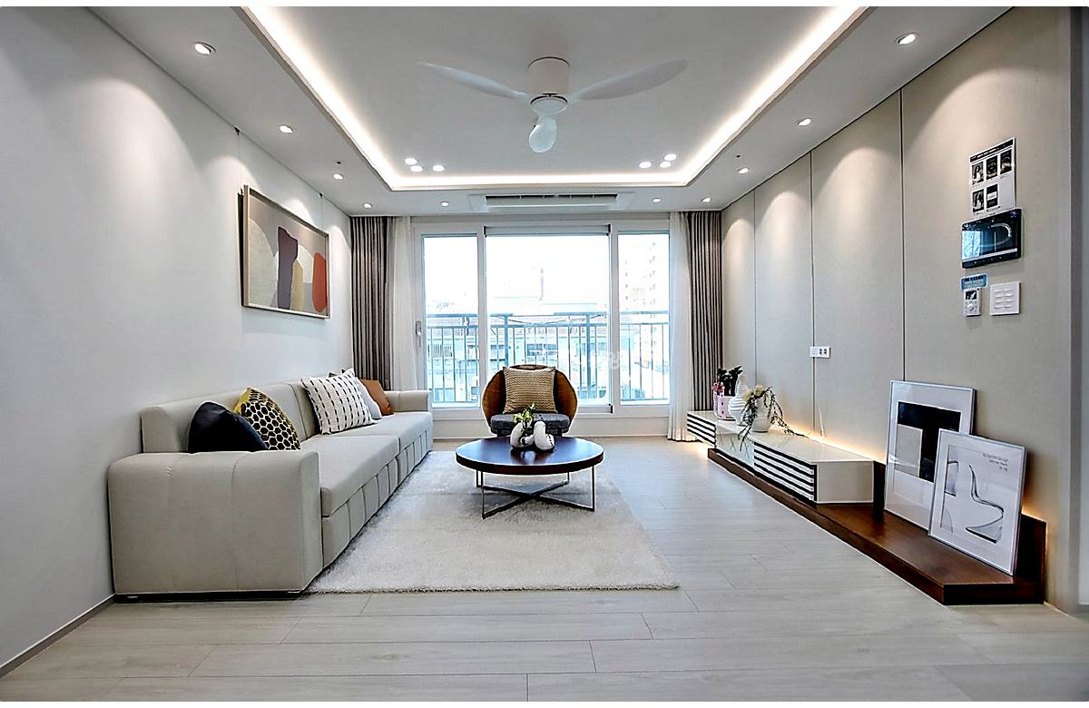 우물형 천장과 실링팬 조합으로 쾌적함을 더했고, 고급스러운 아트보드 마감이 집안 전체의 품격을 높여주네요.