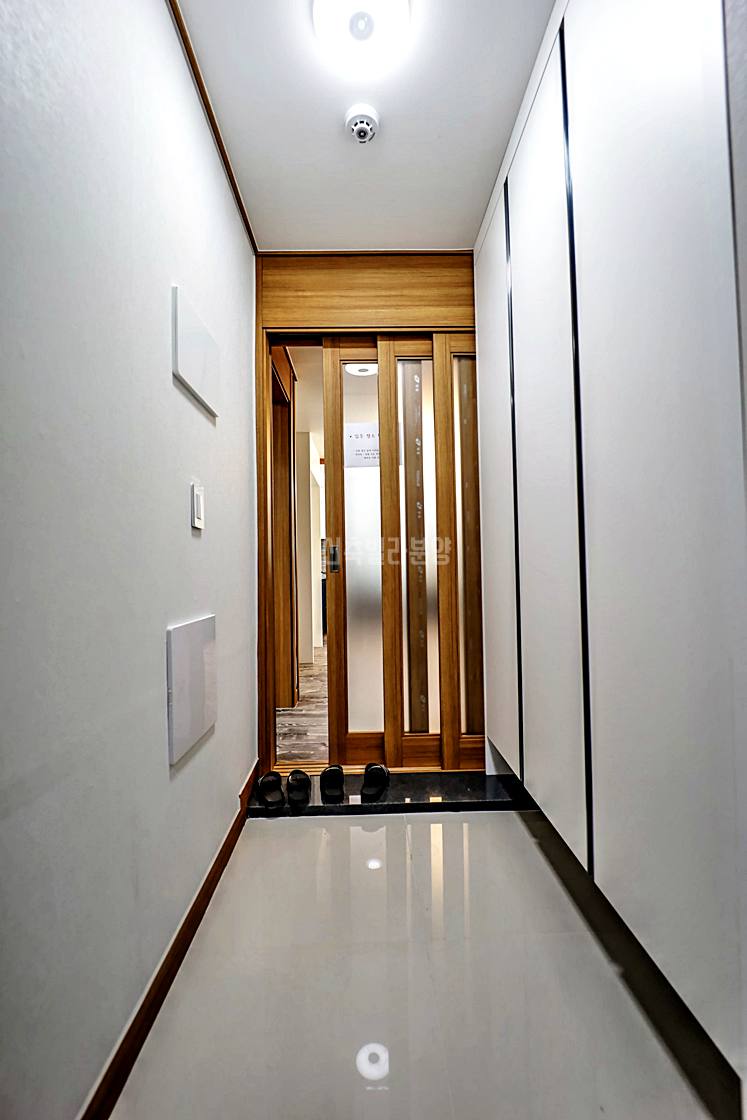 흰 벽면과 우드 톤의 몰딩이 잘 어울려 따뜻한 분위기를 연출하네요.