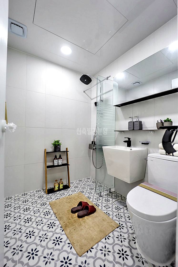 세면대 위치가 적당해서 아침에 바쁘더라도 정리하기 편하죠. 바닥재도 미끄러지지 않는 소재로 처리되어 안전합니다. 겨울철에도 결로 현상이 심하지 않은데, 방수 처리가 잘 되어 있는 탓이죠.