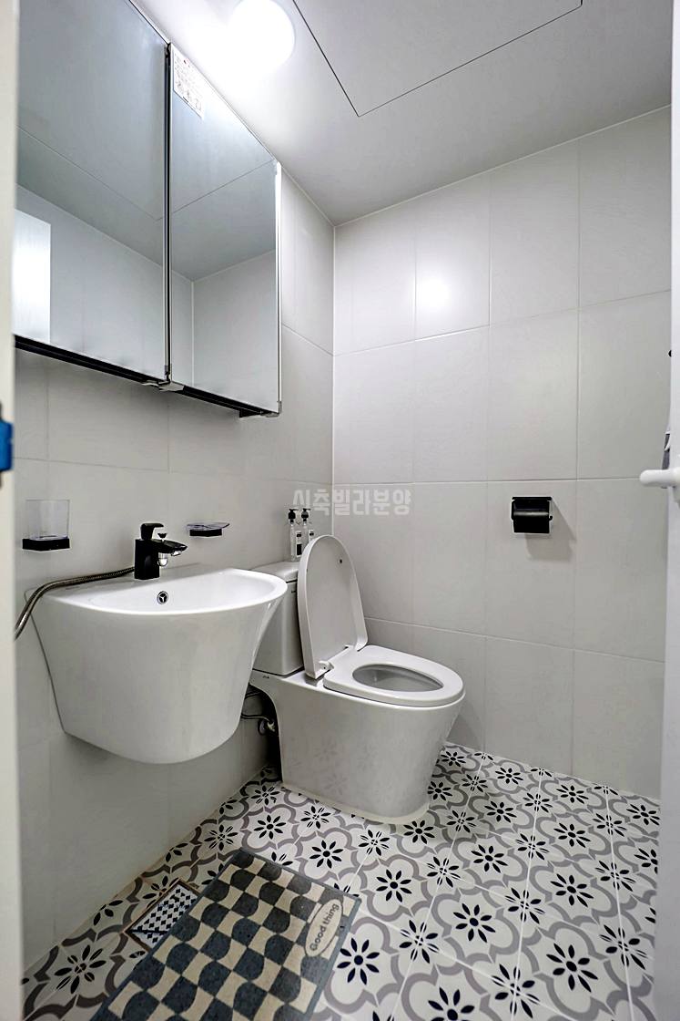 주안동신축빌라 욕실은 샤워 기능을 갖췄습니다. 레인 샤워기와 젠다이 선반, 수납장 등 기본 구성이 잘 갖추어져 있어요. 메인 욕실에는 샤워 피티션이 있어 물튀김 걱정이 없습니다. 환기 시스템도 잘 되어 있어서 습기를 빼기에 좋아요.