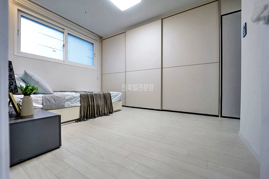 주안동신축빌라 안방부터 작은방까지 모두 가구 배치에 효율적이에요. 특히 안방에는 붙박이장과 스타일러, 화장대가 기본 옵션으로 들어가요. 사이즈도 넉넉해서 수납 걱정이 없죠. 안방과 중간 방에는 시스템 에어컨이 있어 계절별 온도 조절이 편하답니다.