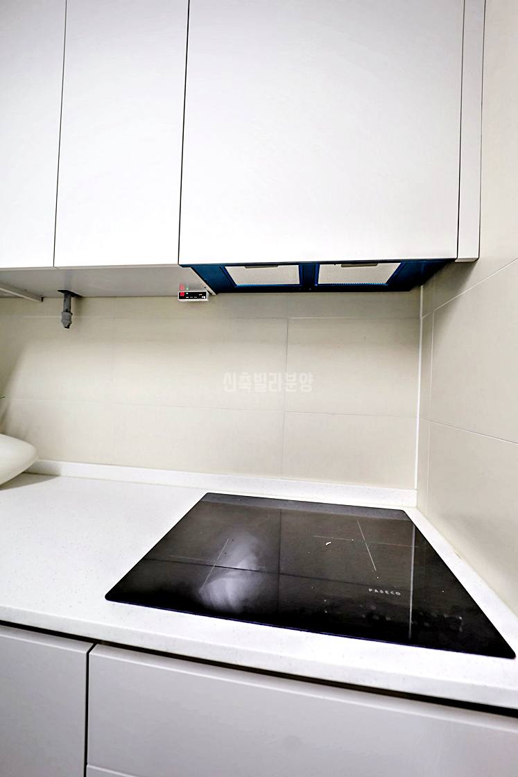 메인 화구는 전기레인지지만 가스 배관이 있어서, 원하시는 대로 가스 쿡탑으로 바꾸실 수도 있어요. 이 점은 요리 취향이 다른 분들에게 유연한 선택을 제공하죠. 수납 공간도 충분하고 세면대 위치가 적당해서, 정리 정돈에 불편함이 없습니다.