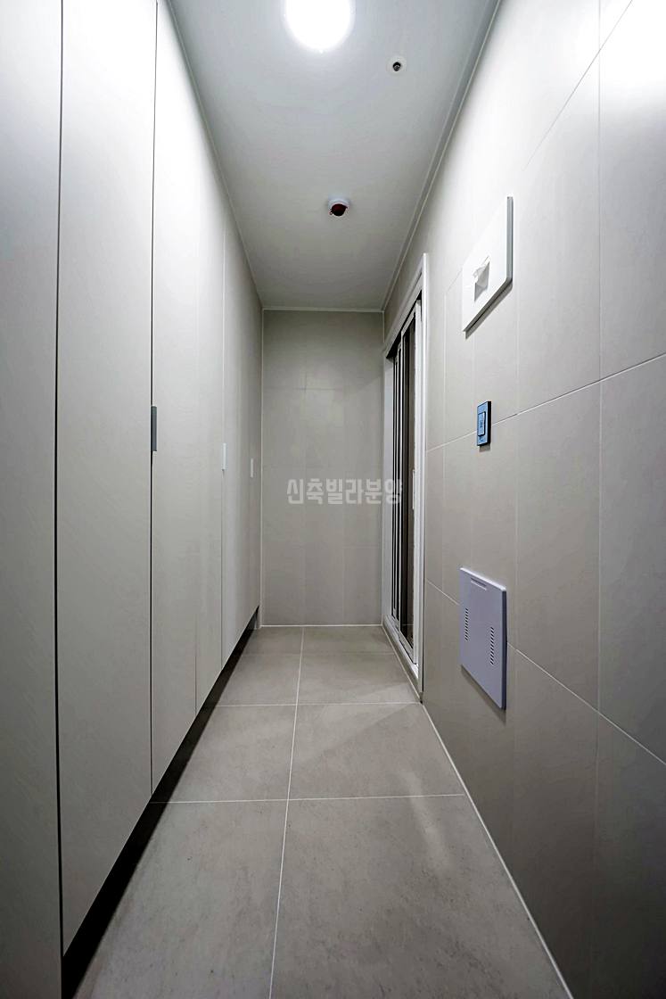 신발장 문 열어보니까 화이트 톤으로 깔끔하죠. 3 연동 중문과 일괄소등 스위치가 있어 안전에 신경 썼어요. 특히 현관에 발코니가 연결되지 않았지만, 1 층에는 엘리베이터와 CCTV 가 설치되어 있습니다. 무인경비시스템이 있어 안전도 높죠.