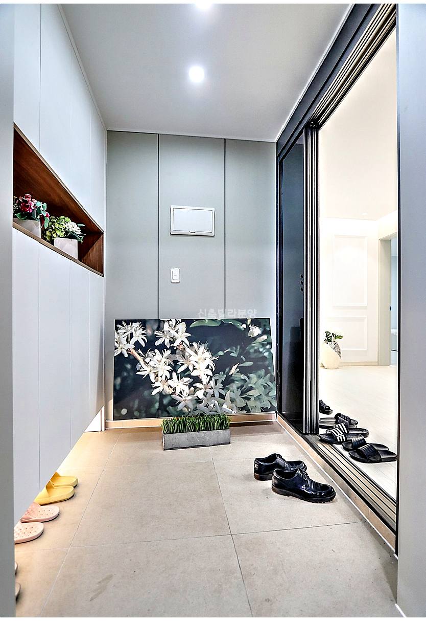 현관에는 중문, 일괄소등스위치, 신발장이 기본으로 설치되어 있고요.