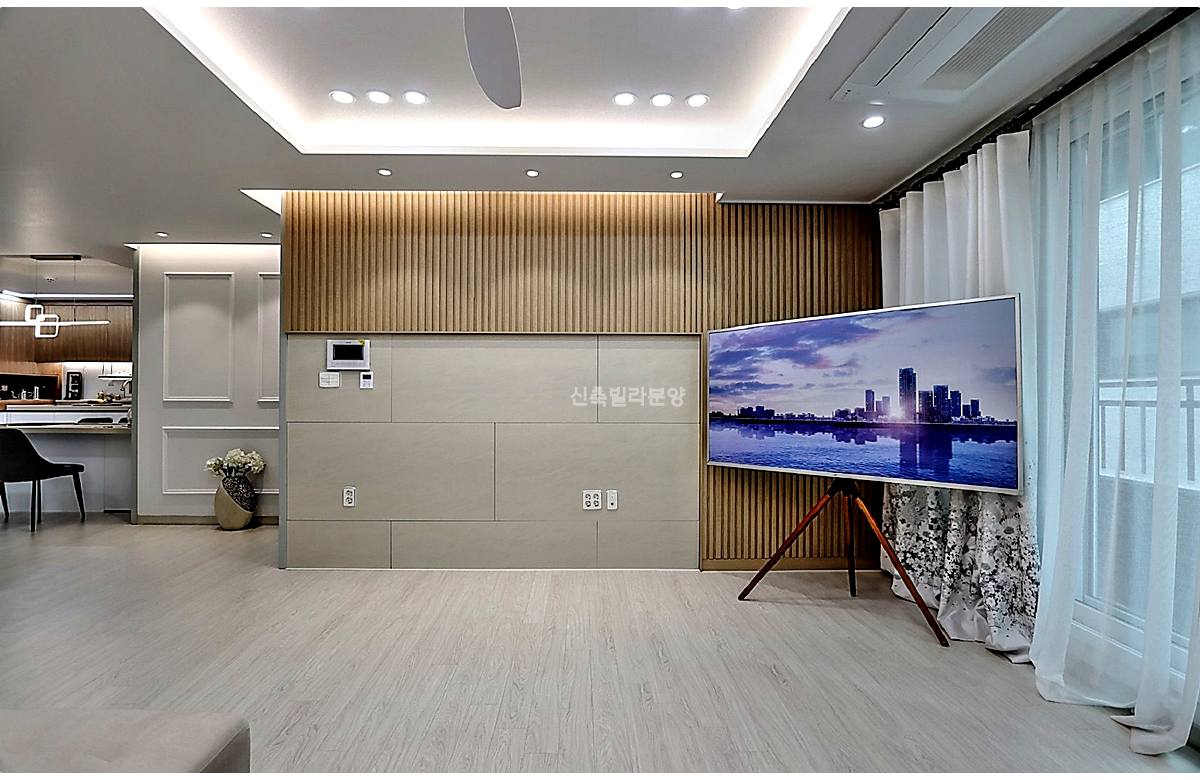 인천신축빌라 오픈형 거실-주방 구조인데, 이 현장은 분리형이에요.